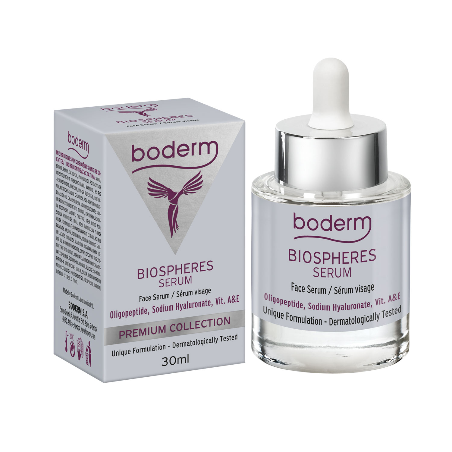 Boderm Biospheres Serum is a serum with microspheres of vitamins A & E for the daily care and antioxidant protection of the facial area and neck, suitable for all skin types. Contains natural agents hydration such as: